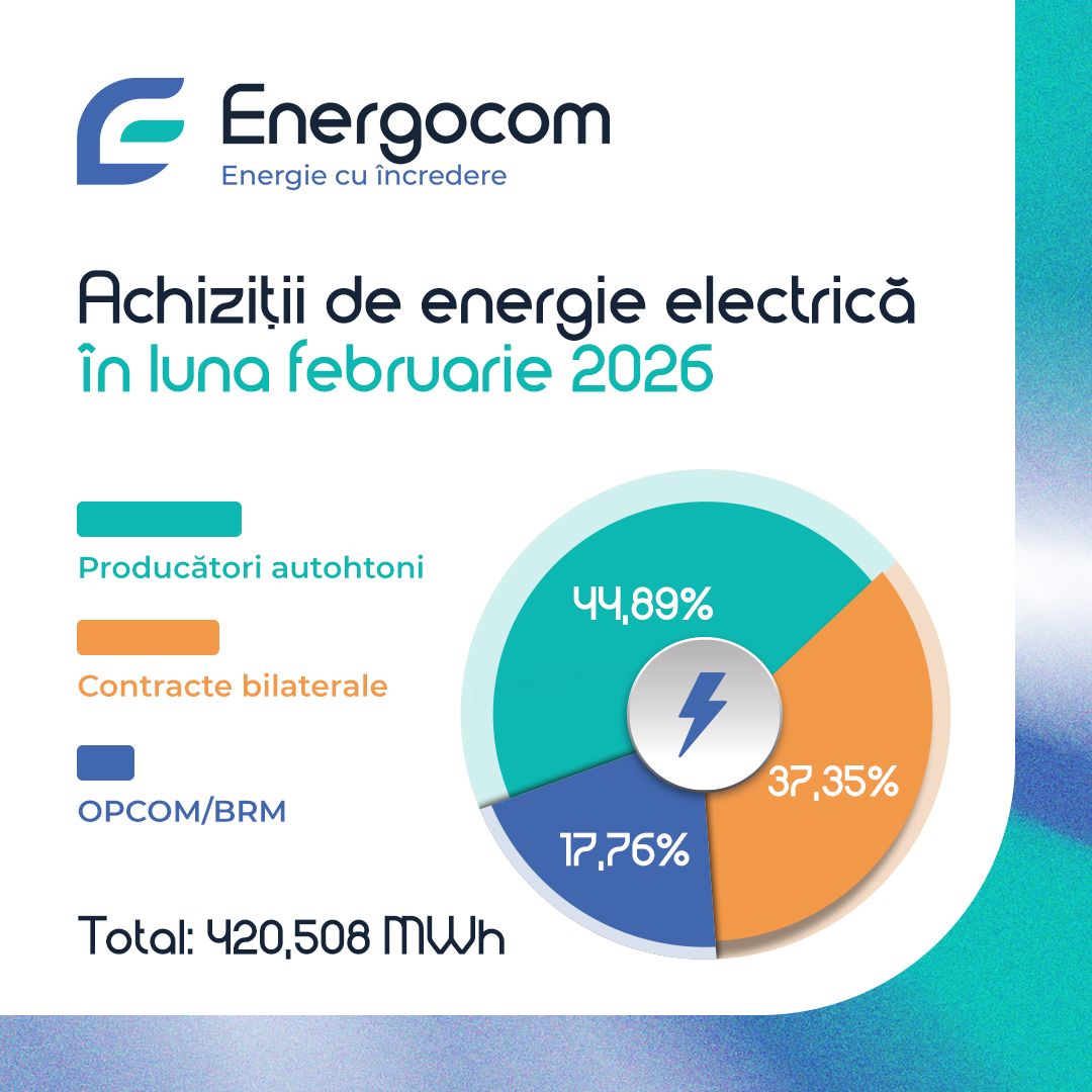 În februarie 2026, S.A. „Energocom” a achiziționat un volum total de 420,508 mii MWh de energie electrică, provenită atât din surse interne, cât și din cele de import. Prețul mediu ponderat al energiei procurate a constituit 123,80 EUR/MWh. Din volumul total de energie, 55,11% a fost acoperit prin importuri, iar 44,89% a provenit de la producătorii locali. Totodată, 37,35% din energia achiz…