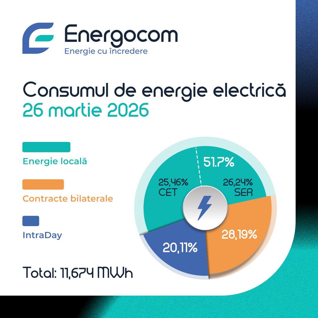 S.A. Energocom informează că a reușit să acopere integral necesarul de consum de energie electrică pentru ziua de joi, 26 martie. Astfel a fost achiziționat un total de 11.674 MWh, dintre care aproximativ 52% este energie locală (CET și SER-uri), circa 28% sunt contracte bilaterale provenite din import, iar restul de 20% sunt achiziționate pe platforme de tranzacționare de energie din țările v…