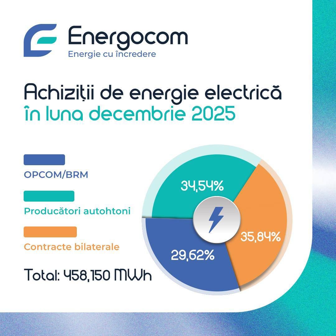 SA Energocom continuă să asigure stabilitatea energetică a Republicii Moldova. Astfel, în decembrie 2025, Societatea a achiziționat un volum total de 458,150 mii MWh de energie electrică, care a provenit atât din surse interne, cât și din importuri, la un preț mediu ponderat de 132,57 EUR/MWh. În acest context, importurile au constituit 65,46% din volumul total, în timp ce energia livrată d…