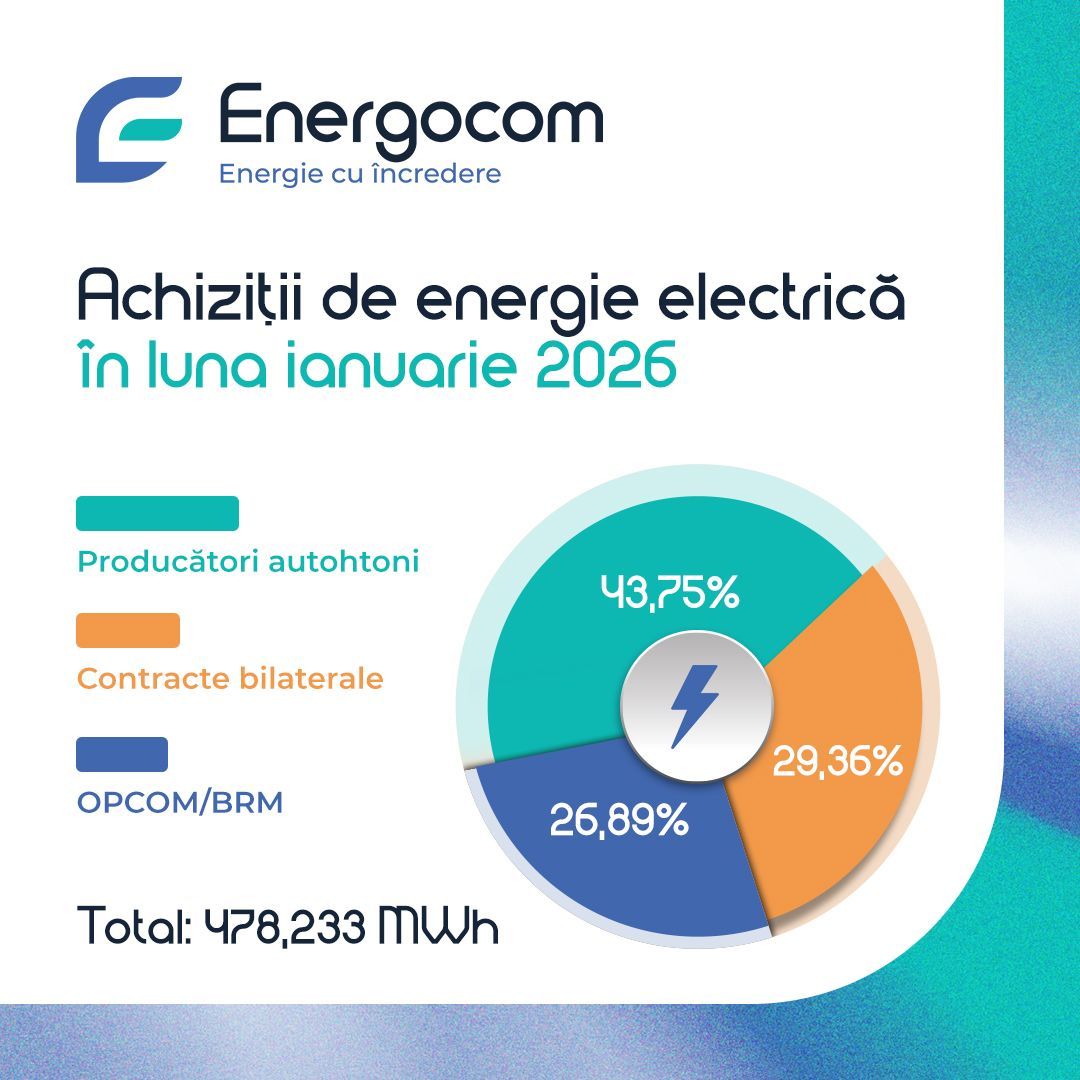 În luna ianuarie 2026, S.A. „Energocom” a achiziționat un volum total de 478,233 mii MWh de energie electrică, provenită atât din surse interne, cât și din cele de import. Prețul mediu ponderat al energiei procurate a constituit 144,52 EUR/MWh. Din volumul total de energie, 56,25% a fost acoperit prin importuri, iar 43,75% a provenit de la producătorii autohtoni. Totodată, 29,36% din energi…
